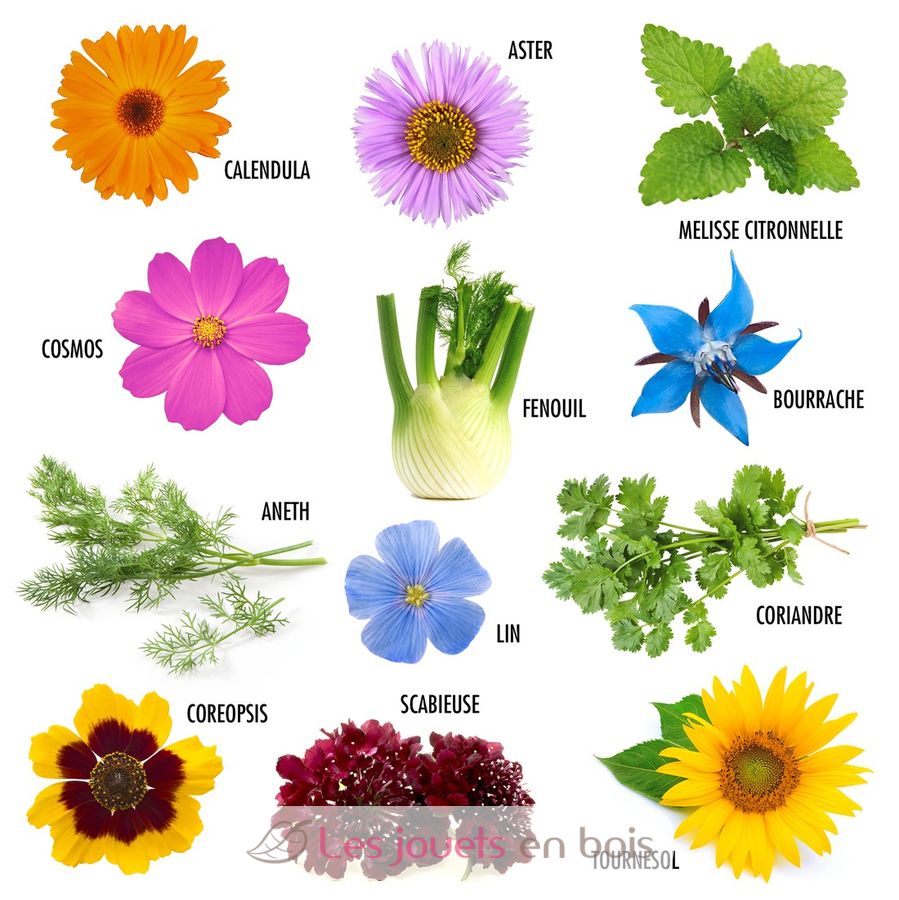 Variétés de fleurs mellifères contenues dans ce coffret de 12 graines de fleurs à papillons :