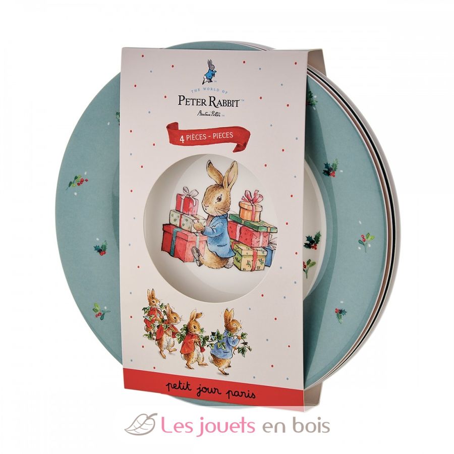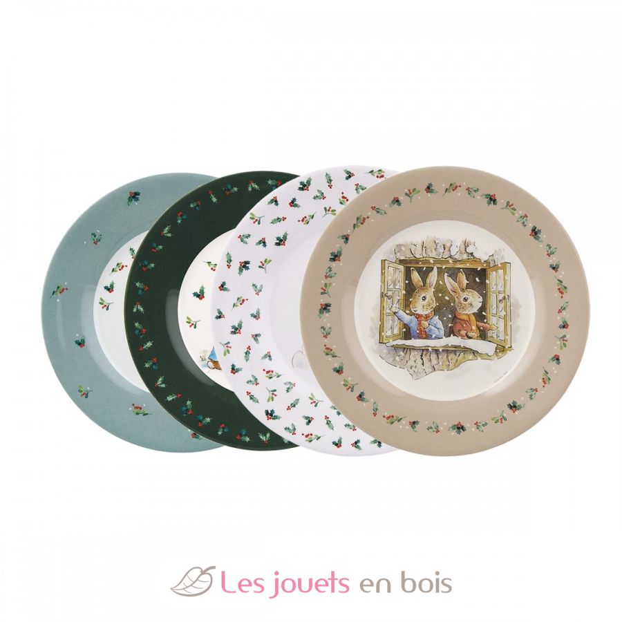 Set de 4 Assiettes Pierre Lapin Noël diamètre 20 cm, de la vaisselle pour enfant de la marque Petit Jour.