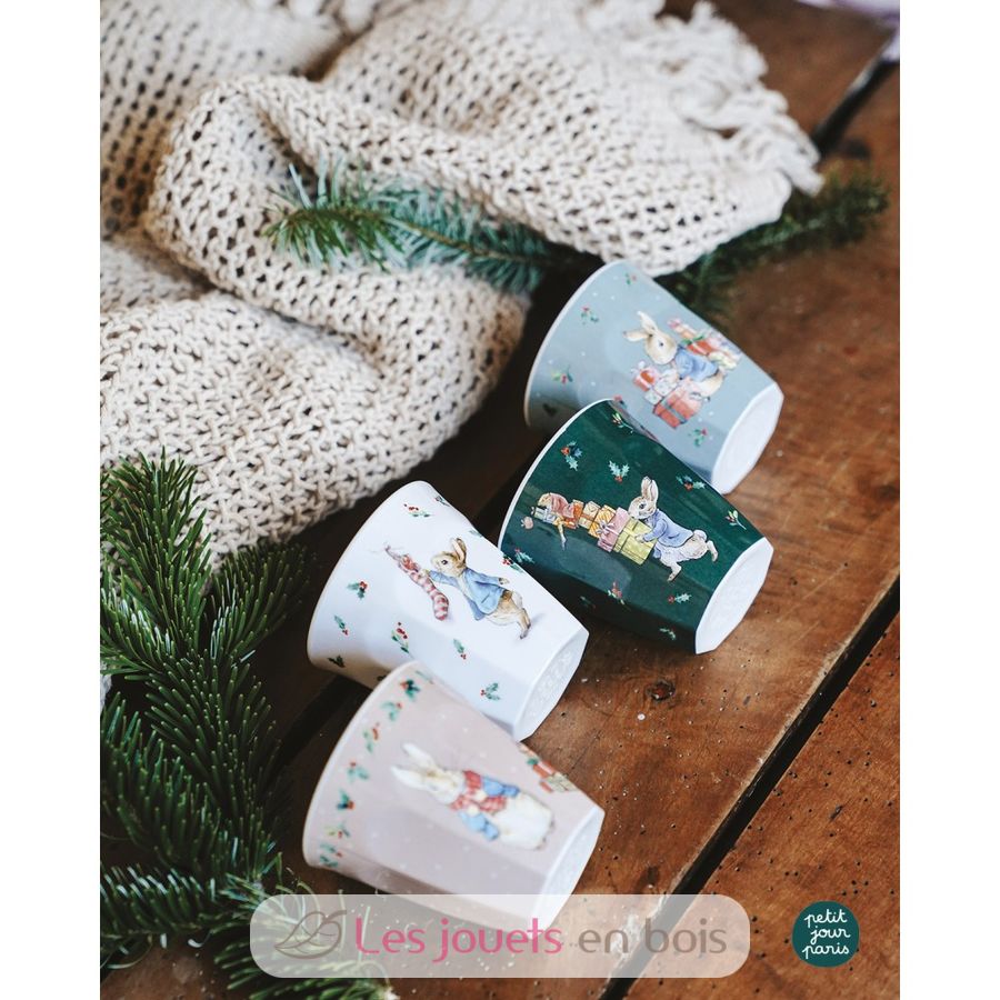 Set de 4 Gobelets Pierre Lapin Noël, de la vaisselle pour enfant de la marque Petit Jour.