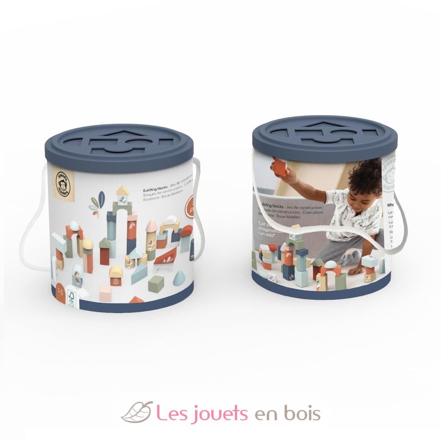 Les blocs sont présentés dans un joli baril muni d'une poignée et d'un couvercle trieur de formes, pour un rangement encore plus ludique.