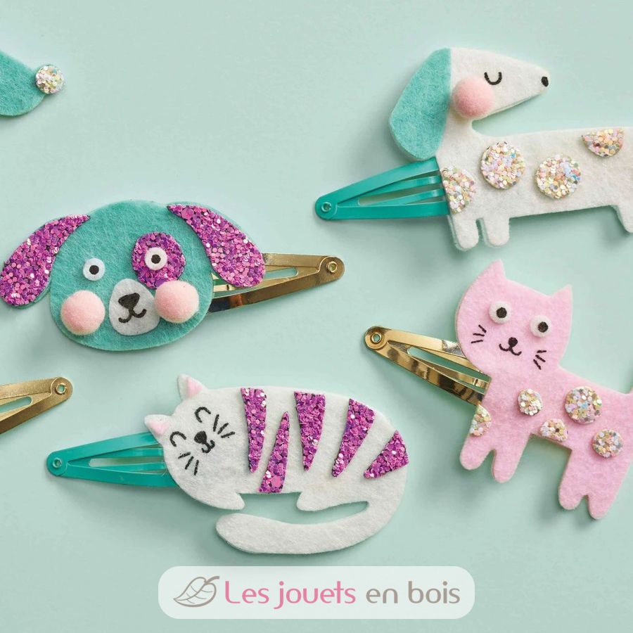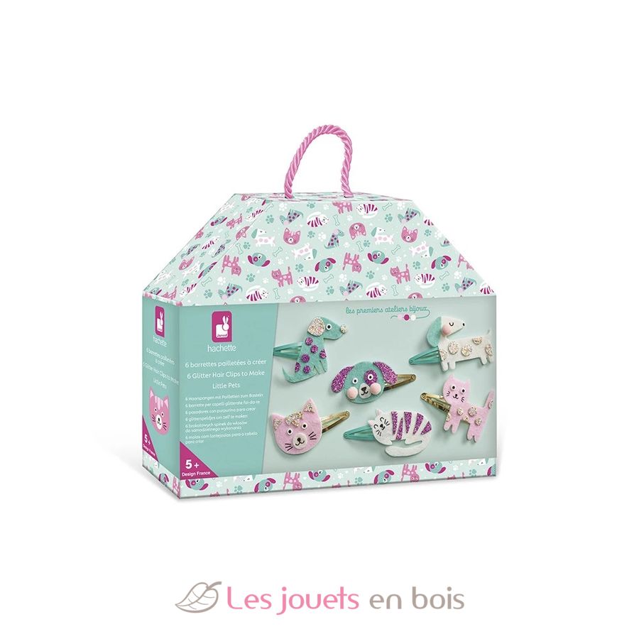 Découvrez le kit créatif 6 barrettes pailletées Little Pets à créer de la collection Mes premiers ateliers bijoux de chez Janod, une activité de création de barrettes à cheveux pour les enfants à partir de 5 ans.