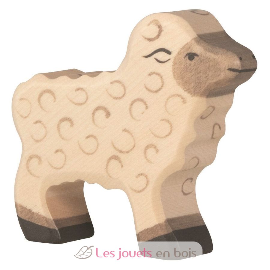 Agneau, 7 x 1,9 x 6,2 cm, figurine en bois Holztiger, réf 80076.