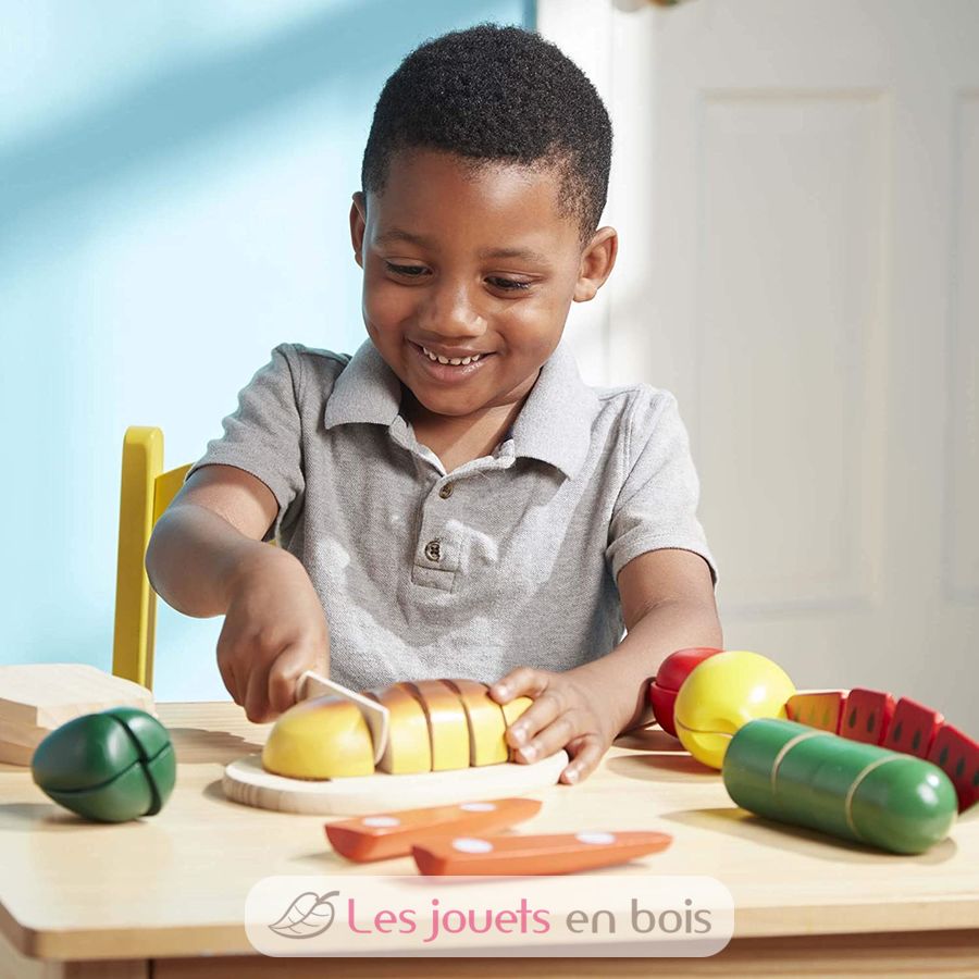 Ce coffret d'aliments en bois à découper, de la marque Melissa & Doug, est idéal pour initier les enfants au concept des fractions.