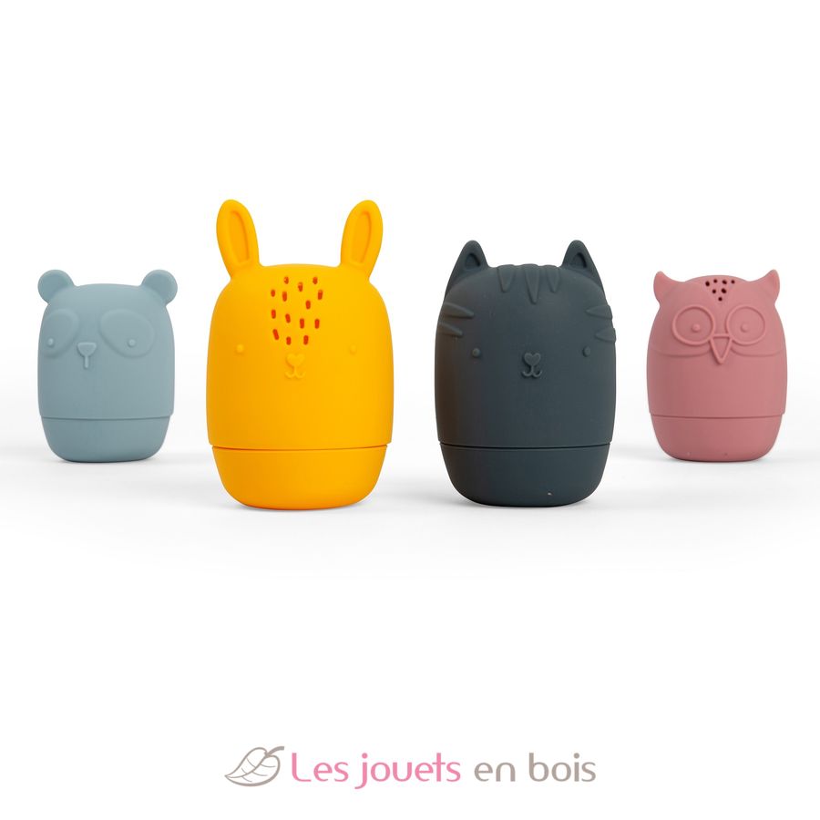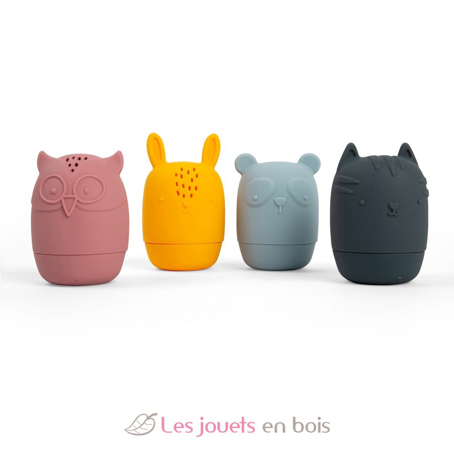 Cet ensemble se compose de 4 animaux aspergeurs en silicone (un hibou, un panda, un lapin et un chat) qui font gicler de l'eau lorsque l'on appuie dessus. De quoi amuser votre enfant lors du bain ou des baignades. Ces jouets d'eau trouveront aussi bien leur place dans la salle de bain que dans votre sac de plage pour jouer au bord de la mer.