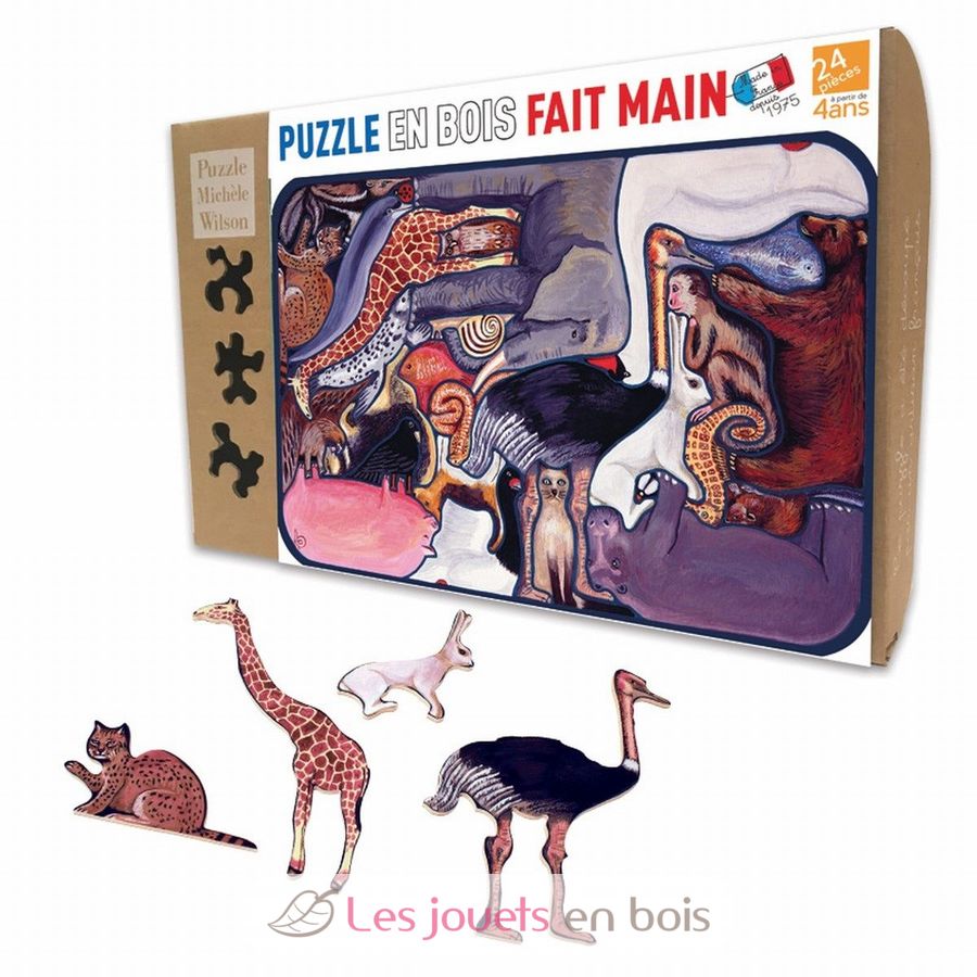 Ce puzzle en bois issu de forêts gérées durablement est fabriqué à la main en France par la maison Michèle Wilson, livré dans une boîte kraft en carton recyclé qui s'ouvre et se ferme très facilement. L'étiquette coulisse pour garder sous la main la grande image à recomposer ! Les puzzles Michèle Wilson sont ludiques et éducatifs, conçus pour les enfants. Chaque puzzle est unique et résulte du savoir-faire et de l'imagination de l'artisan. Ils sont créés par l'homme plutôt que par la machine.