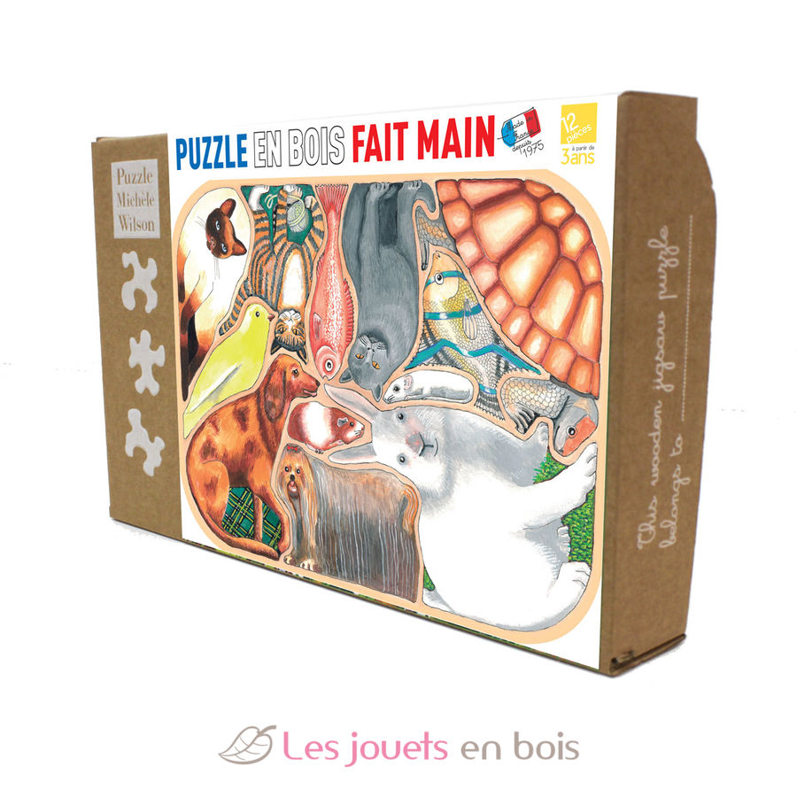 Ce puzzle en bois issu de forêts gérées durablement est fabriqué à la main en France par la maison Michèle Wilson, livré dans une boîte kraft en carton recyclé qui s'ouvre et se ferme très facilement. L'étiquette coulisse pour garder sous la main la grande image à recomposer ! Les puzzles Michèle Wilson sont ludiques et éducatifs, conçus pour les enfants. Chaque puzzle est unique et résulte du savoir-faire et de l'imagination de l'artisan. Ils sont créés par l'homme plutôt que par la machine.