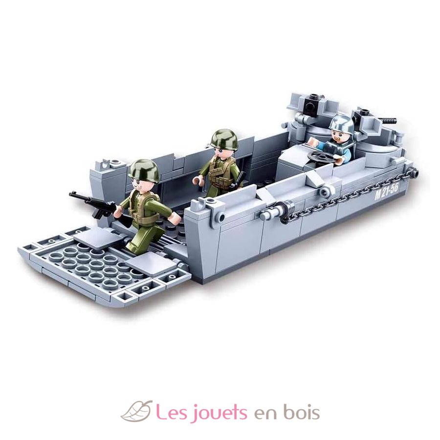 Cet engin de débarquement (Landing Craft en anglais) a été utilisé par les troupes alliées d'assaut qui débarquèrent sur les plages de Normandie le 6 juin 1944, pendant la Seconde Guerre mondiale. Ce kit de construction Sluban WWII contient 182 pièces dont 3 personnages.