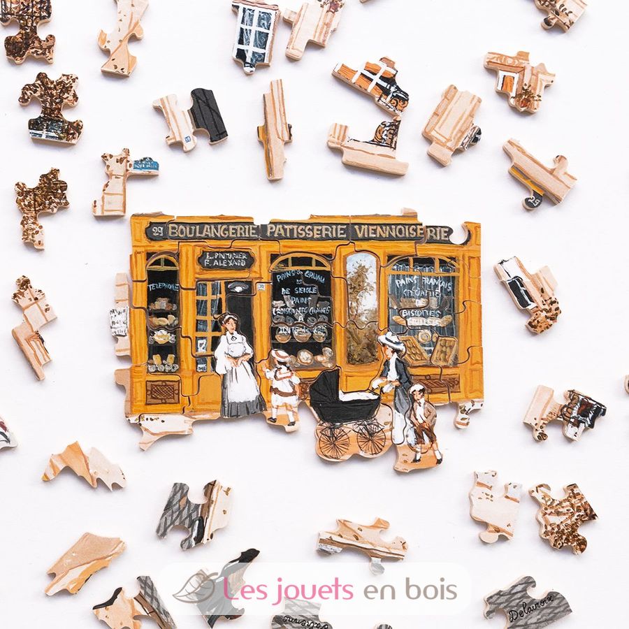 Fabienne Delacroix est une peintre figurative française qui vit et travaille à Paris. Dans ce tableau, elle met à l'honneur la devanture d'une boulangerie de la rue Félix Faure dans le 15e arrondissement de Paris. Un régal à assembler pour les amateurs de baguettes et de viennoiseries !