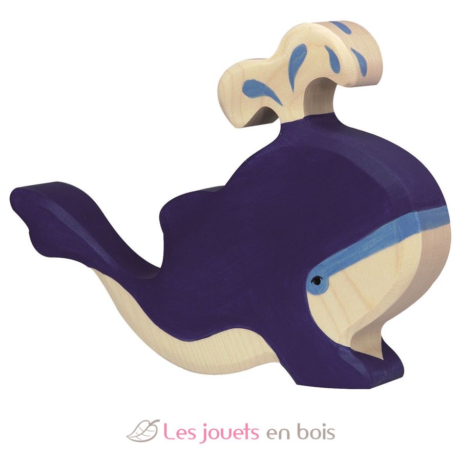 Baleine bleue - jet d'eau, 20 x 2,8 x 13,5 cm, figurine en bois Holztiger, réf 80195.