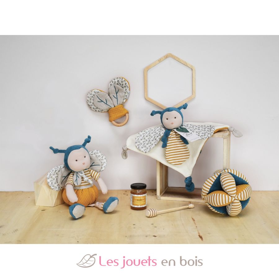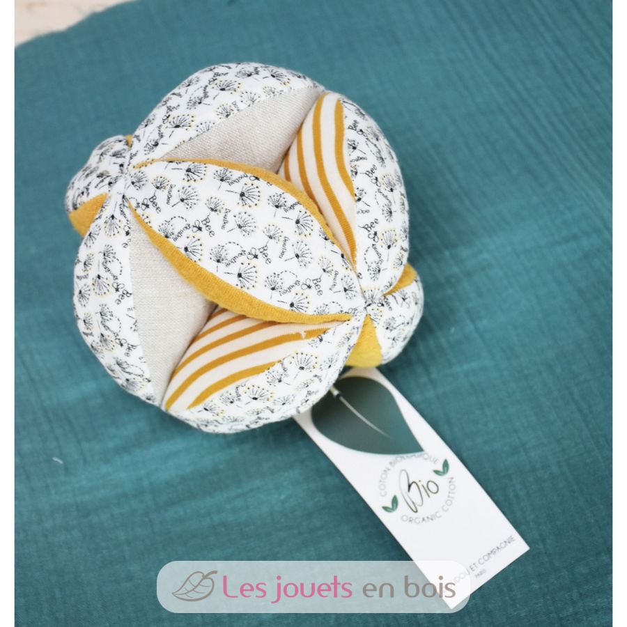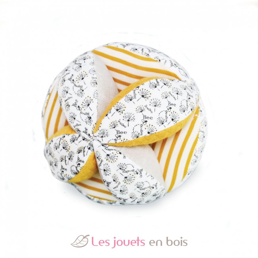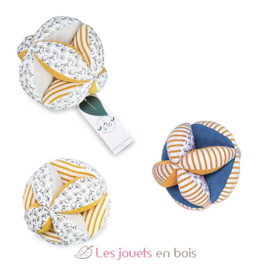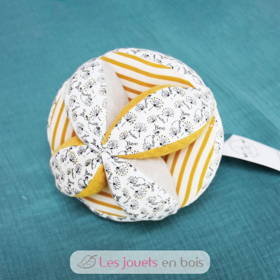 Pollen l'Abeille, la balle de préhension en coton Bio de chez Doudou et Compagnie (vendue à l'unité, modèle aléatoire).