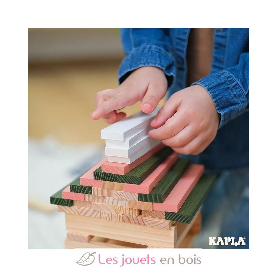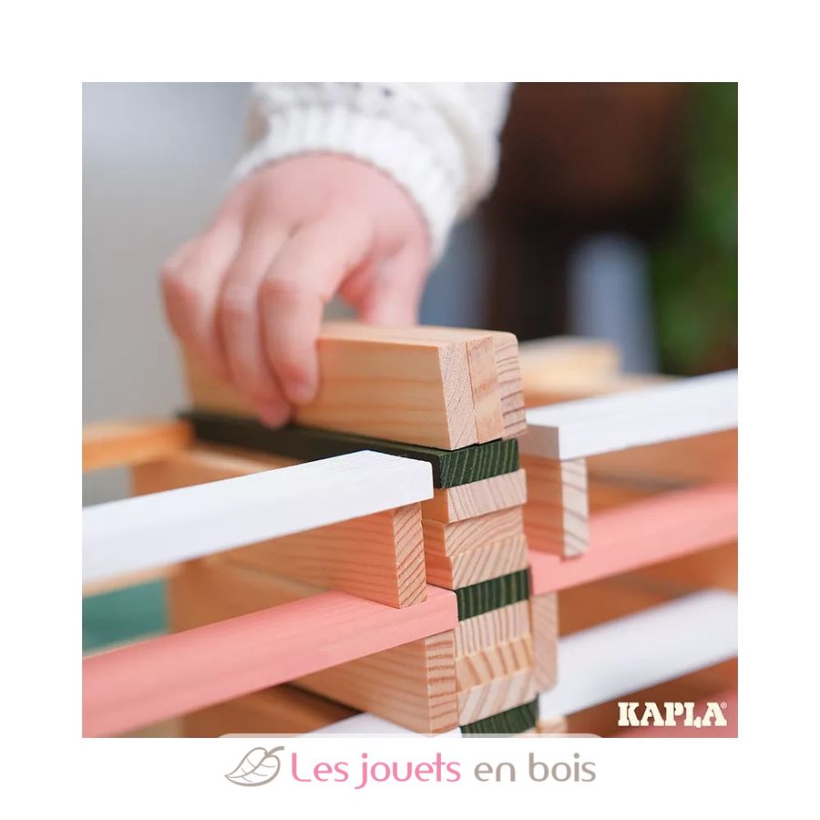 Retrouvez la boîte de base des jeux de construction Kapla dans un assortiment de couleurs printanières.