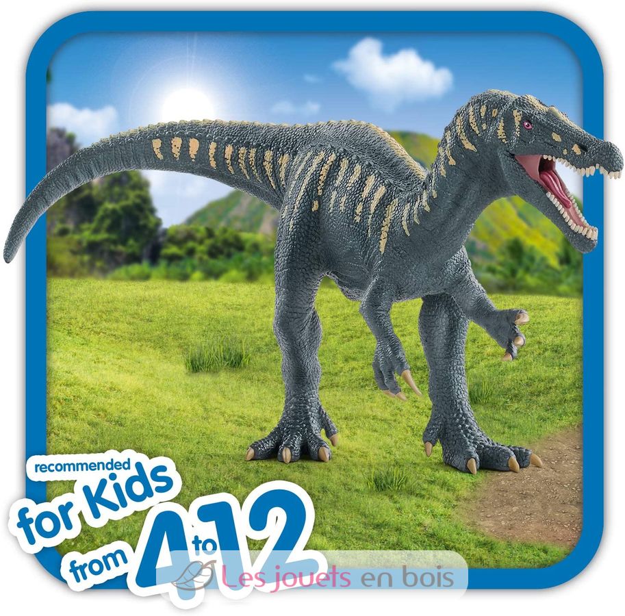 Le crâne long, étroit et plat du Baryonyx ressemble à celui d'un crocodile, ce qui en fait un lézard primitif particulièrement intéressant. Le dinosaure chassait probablement principalement dans l’eau et pouvait plonger son museau parfaitement dans l’eau grâce à sa forme spéciale pour la capture de poissons. Il avait également des griffes en forme de crochet inhabituellement grandes et lourdes qui lui permettait de tenir sa proie.