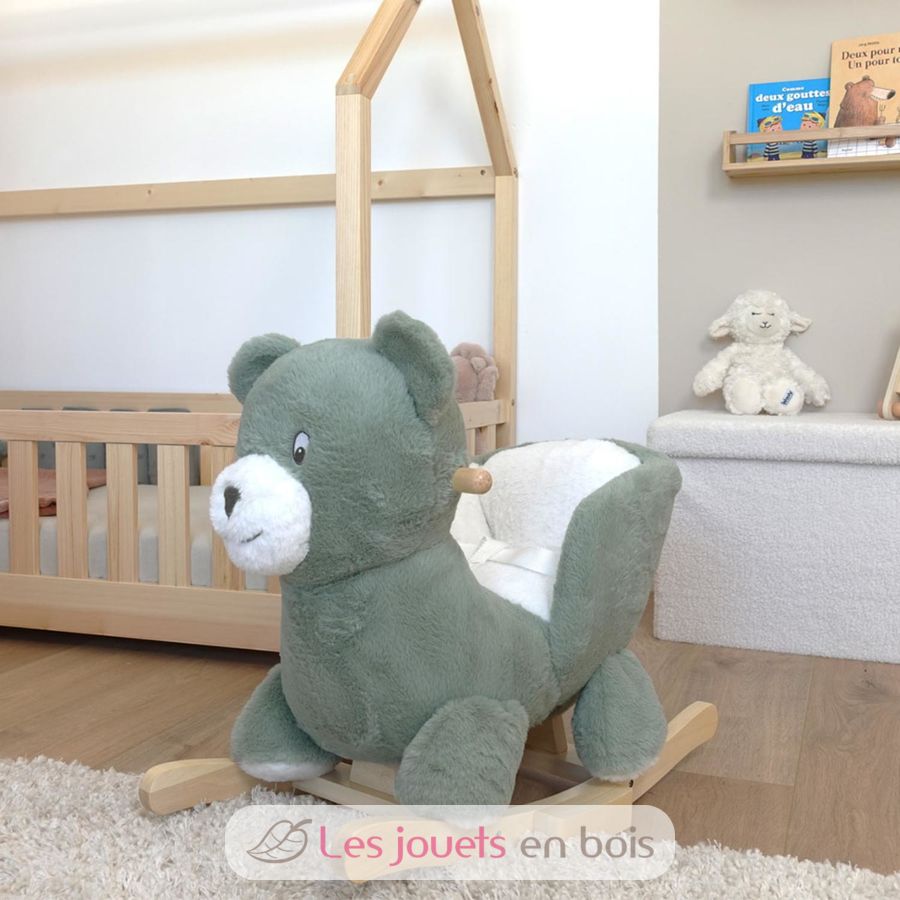 Cette peluche à bascule avec socle en bois participera à l'éveil ainsi qu'au développement de votre petit bout.