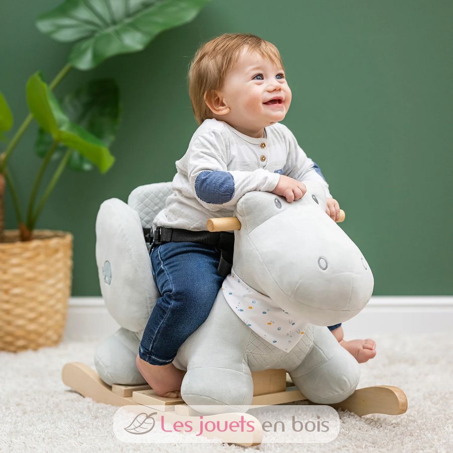 Le harnais de sécurité, le dossier et les accoudoirs, ainsi que les poignées en bois rendent l'utilisation de la bascule sûre pour le bébé. L'enfant exerce son sens de l'équilibre par le jeu, stimulation dans son développement. A utiliser sous la surveillance d'un adulte.