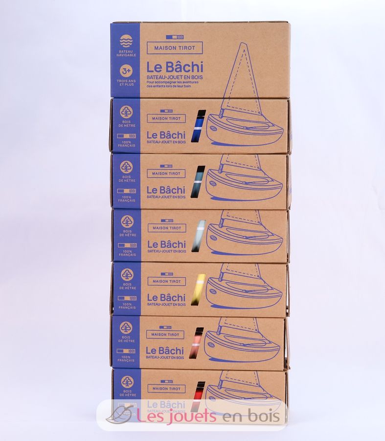 Les bateaux-jouets Tirot sont fabriqués à la main, au sein d'un atelier breton, selon le même savoir-faire et les mêmes gestes transmis de génération en génération depuis 1946. Robustes, ils vivront de longues années à condition de leur apporter le soin qu’ils nécessitent. En effet, le bois est une matière vivante qui réagit à l’eau. Malgré tout le soin apporté à la fabrication de ces bateaux, au contact prolongé de l’eau il est possible que ce dernier se détériore. Il est important de laisser votre bateau sécher à l’ombre et à l’abri de trop fortes chaleurs après chaque usage. Eviter en particulier de faire sécher un bateau sur un radiateur en marche ou en plein soleil l’été.