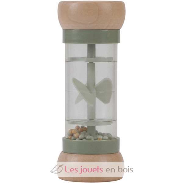 Ce bâton de pluie stimule le développement sensoriel et l'éveil musical de bébé. Les billes de 3 couleurs différentes tombent dans de petites ouvertures à l'intérieur du tube et font tourner l'hélice, en émettant un son agréable. La taille de ce hochet bâton de pluie est conçue pour les petites mains et tient bien dans la main. Matières : bois et plastique.