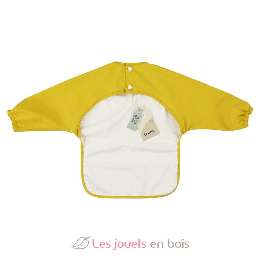 Ce bavoir à manches longues est fabriqué en polyester 100 % recyclé et est imperméable, ce qui le rend facile à nettoyer.