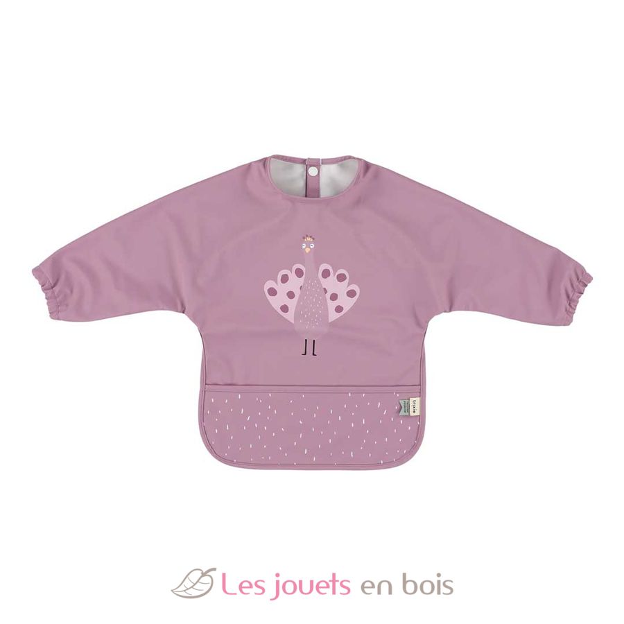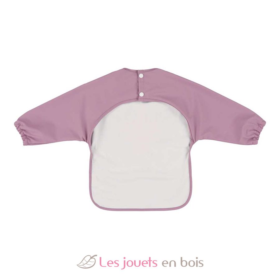 Ce bavoir à manches longues est fabriqué en polyester 100 % recyclé et est imperméable, ce qui le rend facile à nettoyer.