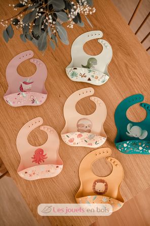 Découvrez nos adorables bavoirs en silicone joliement décorés avec des personnages charmants.