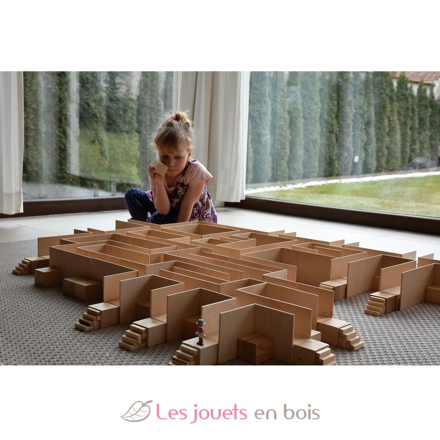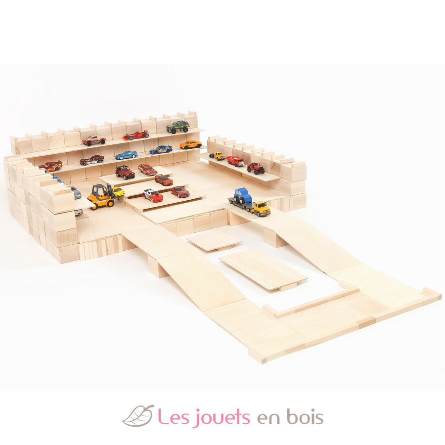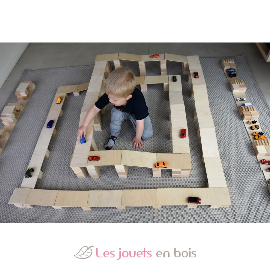 - À l'âge de 4-5 ans, l’enfant commence à planifier et il est très précis dans l’agencement des blocs. Pour cette raison, il commence à créer des constructions de plus en plus complexes. Il apprend à gérer ses frustrations, à résoudre des problèmes et il est de plus en plus persistant dans sa poursuite des objectifs. Des ouvertures, des portes, des allées, des ponts et bien d’autres apparaissent dans ses constructions.