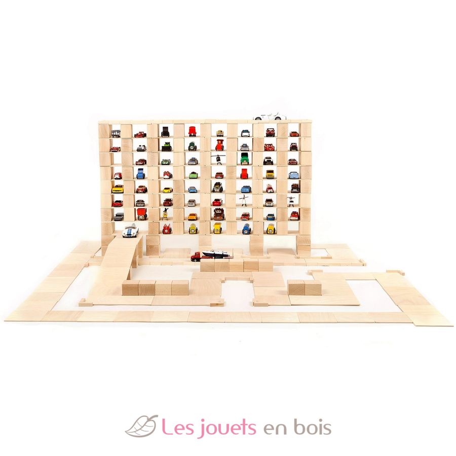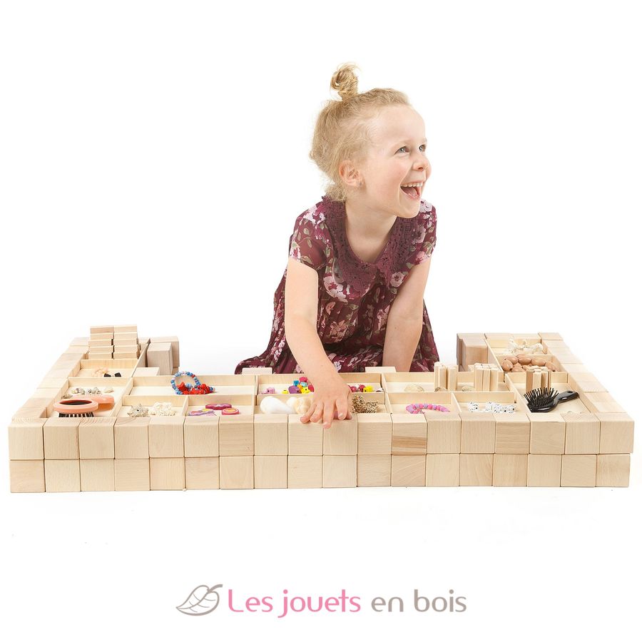 Le Big Pack Just Blocks comprend 338 éléments en bois de 4 formes différentes : 152 blocs, 58 grandes plaques, 28 moyennes plaques et 100 bâtonnets. Leur taille et leur forme ont été soigneusement réfléchies et choisies de façon à soutenir le développement moteur et intellectuel de l’enfant.