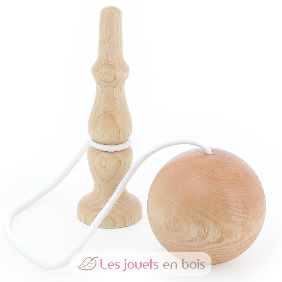 Ce bilboquet en bois massif est fabriqué en France, dans le Jura. C'est un jeu d'adresse idéal pour les petits et les grands, dès 5 ans. En plus de proposer un challenge amusant, celui de faire tomber la boule sur le manche, il permet de développer la concentration et la coordination des petits.