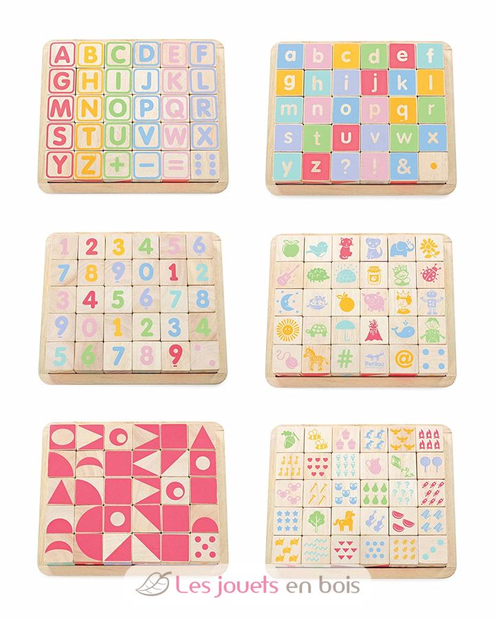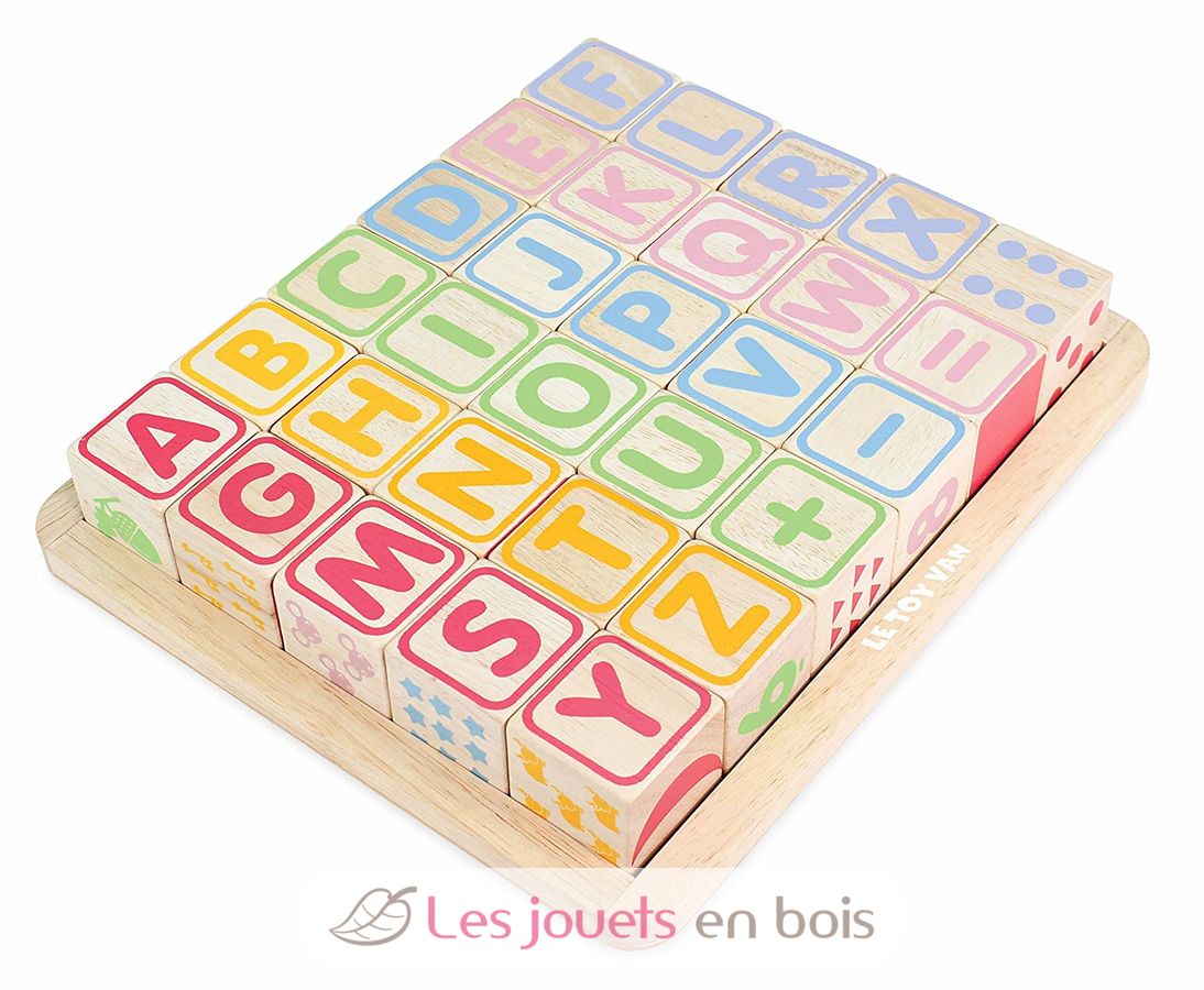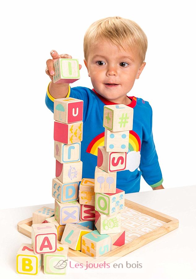 Blocs en bois ABC, 30 cubes en bois, collection « Petilou » de la marque Le Toy Van, réf PL101.