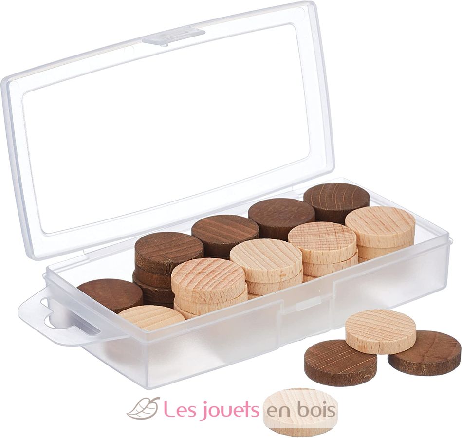 Accueil > Jeux de société > Jeux traditionnels et de cartes > Jeux d'échecs, dames, petits chevaux… > Boîte 40 pions dames en bois