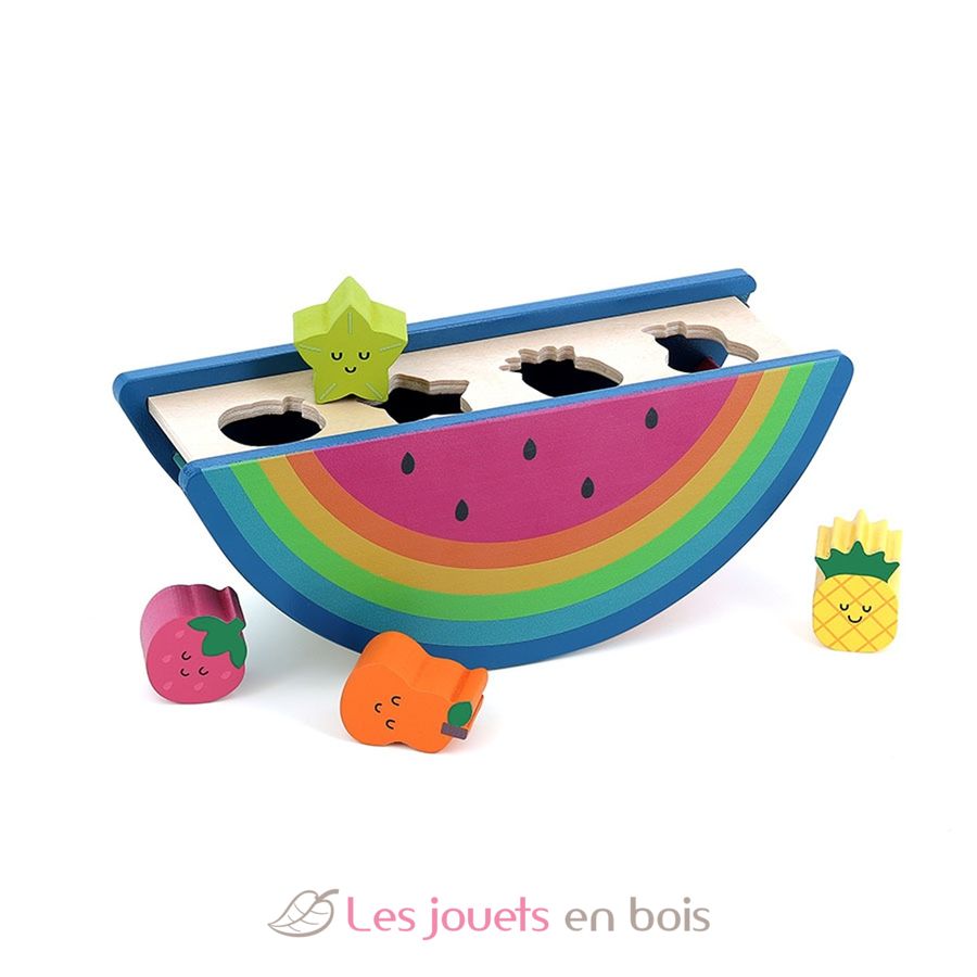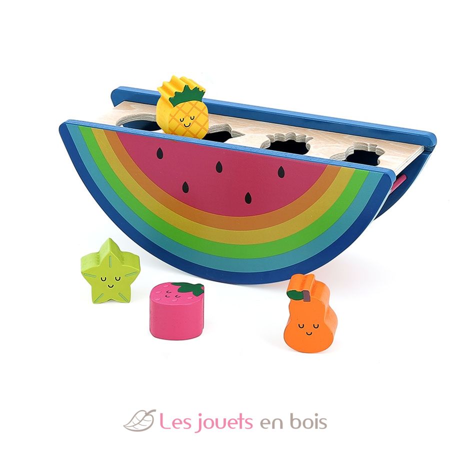 Avis aux gourmandes et aux gourmands ! Voici la pastèque d'encastrement en bois dessinée avec originalité par Andy Westface, pour les enfants à partir de 18 mois.