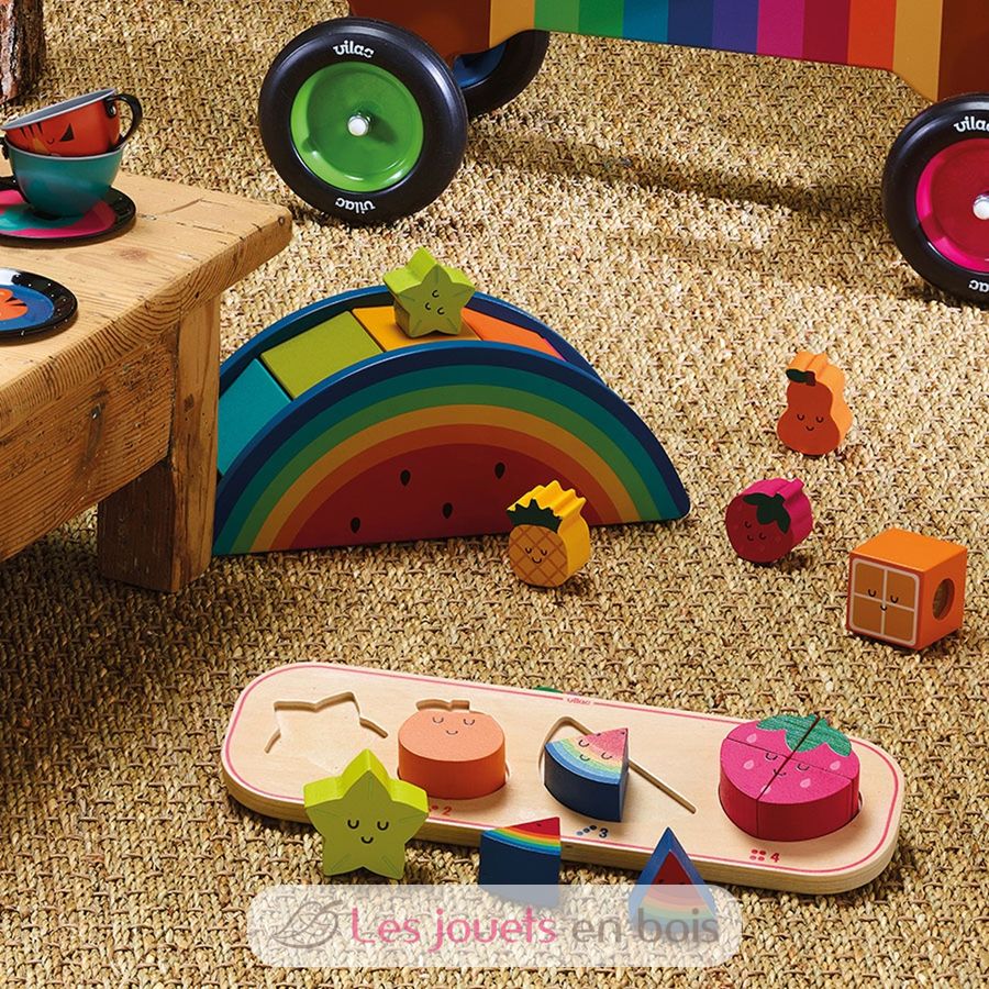 Chaque fruit ne peut rentrer que dans son emplacement, ce qui va faire travailler patience et concentration !