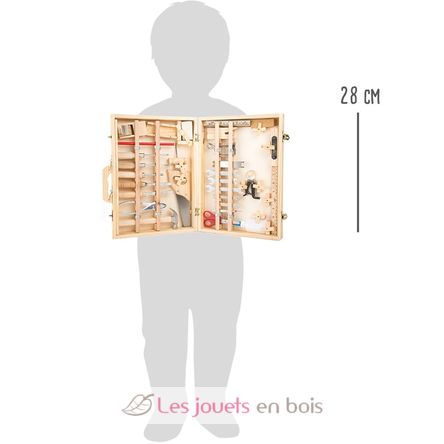 Boite à outils "Deluxe". Voici le nec plus ultra de nos boîtes à outils: coffret en bois à rabats avec une bonne trentaine de pièces pour petits bricoleurs!