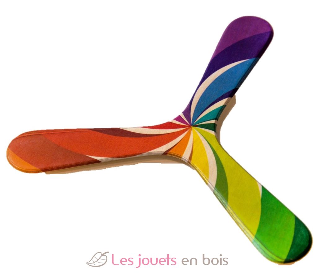 Avec le boomerang arc-en-ciel, l'été peut arriver. Ce design coloré est un classique, les couleurs vives créent une palettes de couleurs lorsque le boomerang tourne sur lui-même. Ce modèle n'est disponible que pour les droitiers et vole mieux par vent léger. Il est génial à lancer et à attraper, ce qui le rend parfait pour les débutants. Sa forme et son envergure de 24 cm permettent à ce boomerang de voler à une distance d'environ 20 mètres.