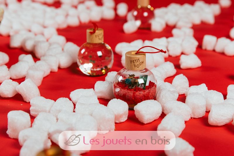 Fabriquées à la main en Espagne, à partir de plastique recyclable, d'un bouchon en bois d'érable et d'éléments naturels, les boules de Noël Petit Boum sont incassables. Elles ont été pensées et conçues pour les enfants dès 3 mois. L'intérieur est étanche et chaque boule dispose d'un double bouchon entièrement scellé pour que les petits puissent les manipuler en toute sécurité. Les boules sensorielles Petit Boum sont exemptés de BPA, de métal et de phtalates.