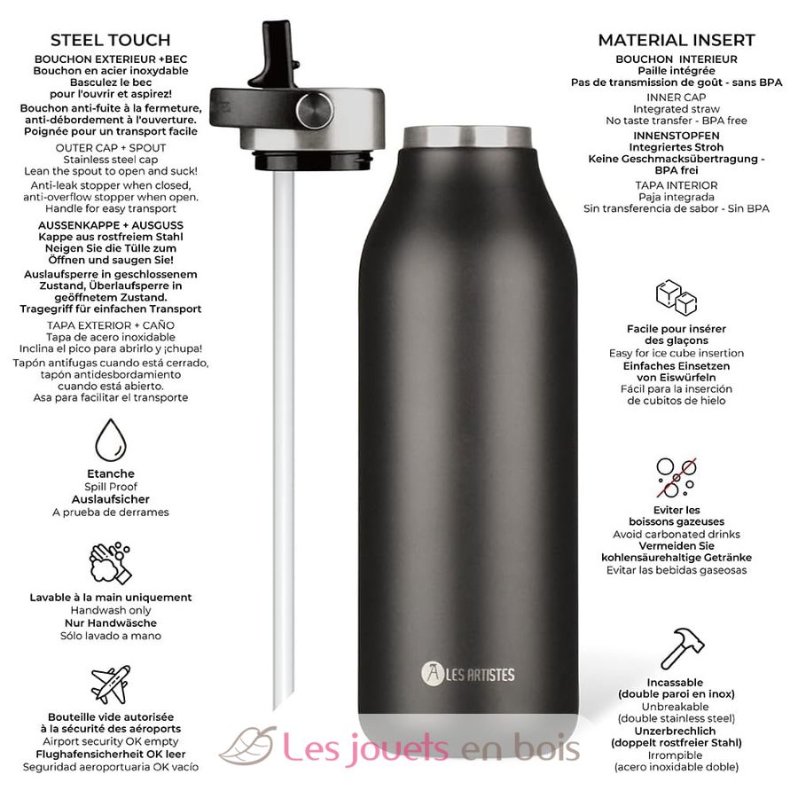 Bouteille isotherme 2.0 Black Pearl noir 1,5 Litre - Les Artistes Paris.