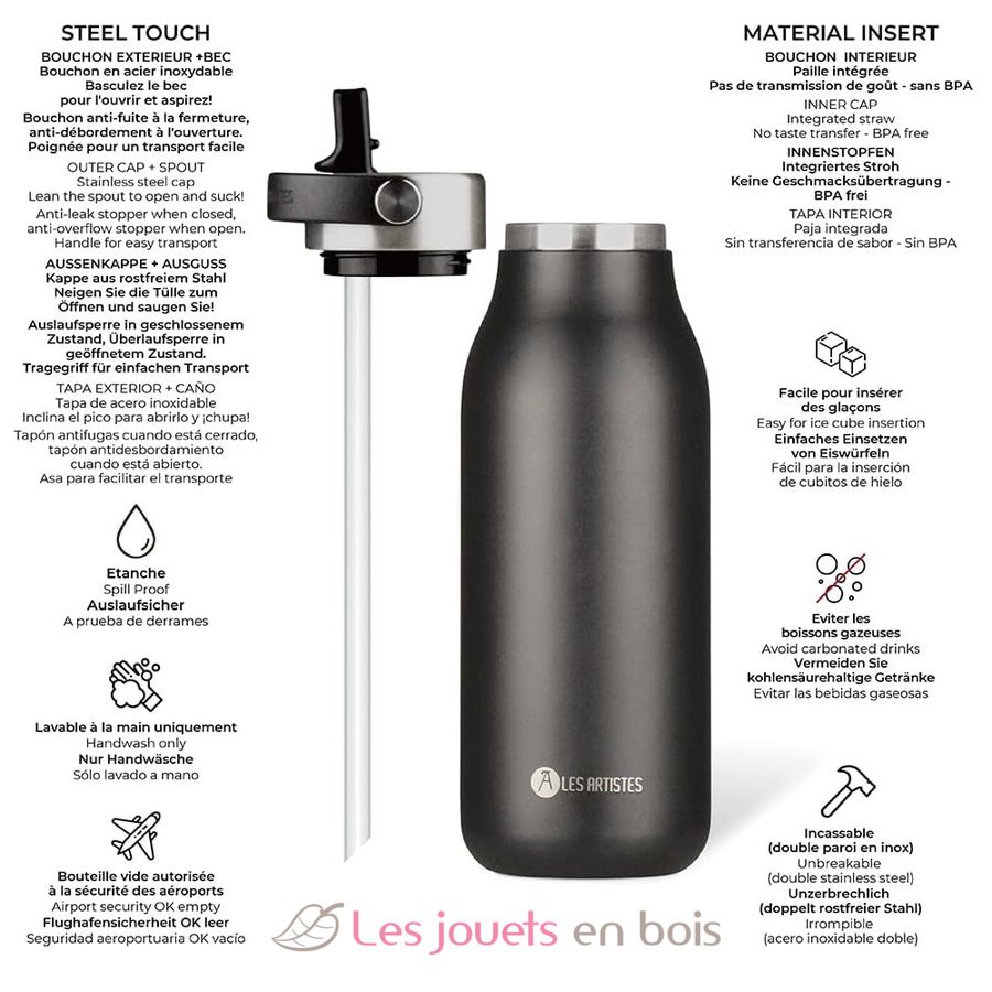 Bouteille isotherme 2.0 Black Pearl noir 1 Litre - Les Artistes Paris.