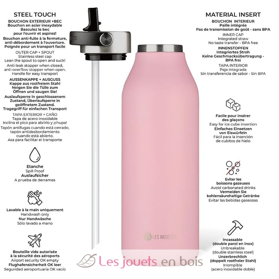 Bouteille isotherme 2.0 Magnolia rose 1,5 Litre - Les Artistes Paris.
