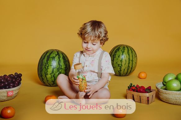 Découvrez la bouteille sensorielle Learn Fruits de la marque Petit Boum. Un jouet d’éveil coloré, inspiré de la pédagogie Montessori, qui stimule les sens des bébés dès 3 mois.
