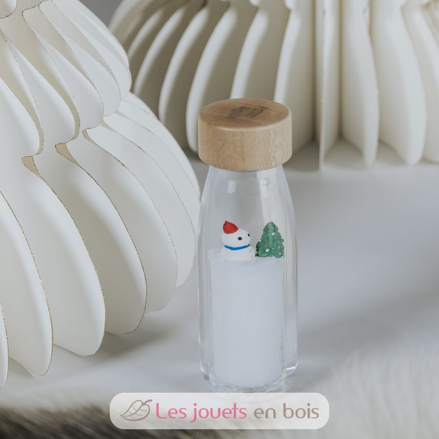 Découvrez la bouteille sensorielle Hiver de la marque Petit Boum. Un jouet d’éveil inspiré de la pédagogie Montessori, qui stimule les sens des bébés dès 3 mois.