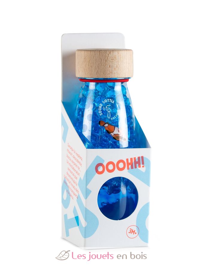 Découvrez la bouteille sensorielle Sound Poissons de la marque Petit Boum. Un jouet d’éveil coloré, inspiré de la pédagogie Montessori, qui stimule les sens des bébés dès 3 mois.