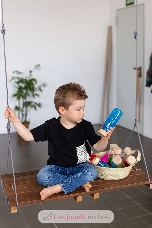 Une bouteille à secouer qui va stimuler le sens auditif de votre enfant, qui va aussi explorer chaque détail et se détendre en observant le contenu du flacon. Une invitation à explorer, à éveiller les sens et la curiosité des plus petits.
