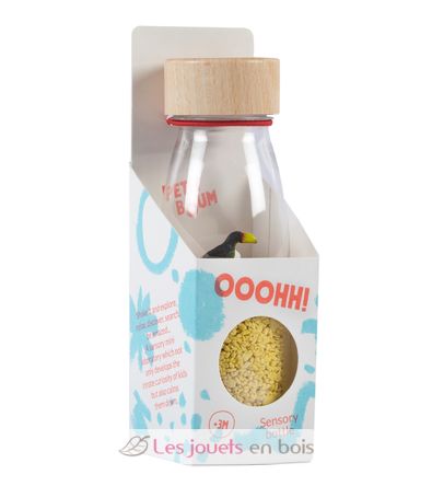 Une bouteille à secouer qui va stimuler le sens auditif de votre enfant, qui va aussi explorer chaque détail et se détendre en observant le contenu du flacon. Votre enfant va pouvoir observer, agiter et découvrir le doux son des éléments. Une invitation à explorer, à éveiller les sens et la curiosité des plus petits.