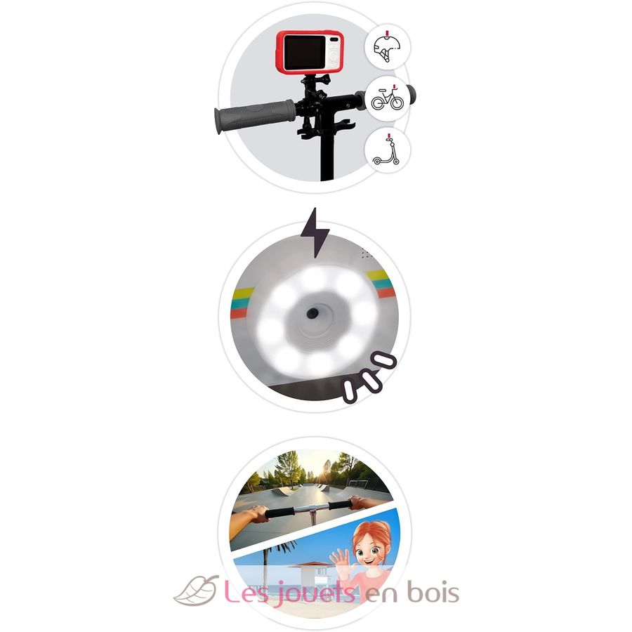 Ajoute la coque en silicone et utilise les accessoires pour fixer l’appareil photo sur une trottinette, un vélo ou un casque. Une carte Micro SD de 16Go est fournie pour enregistrer tes photos et vidéos.