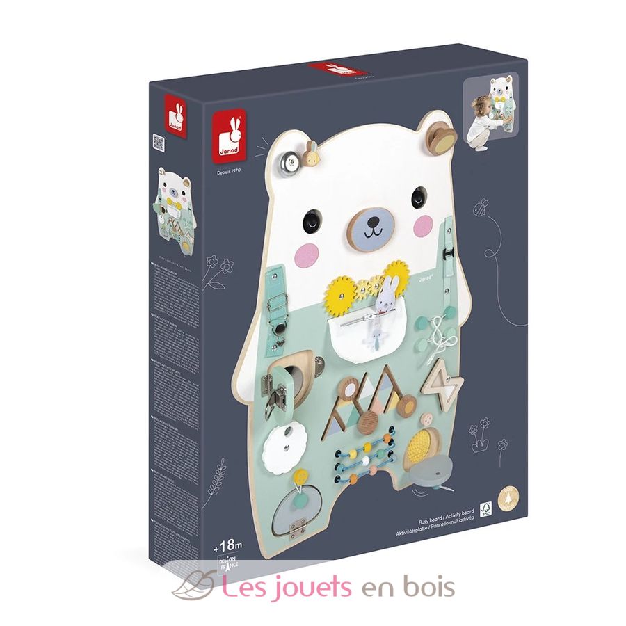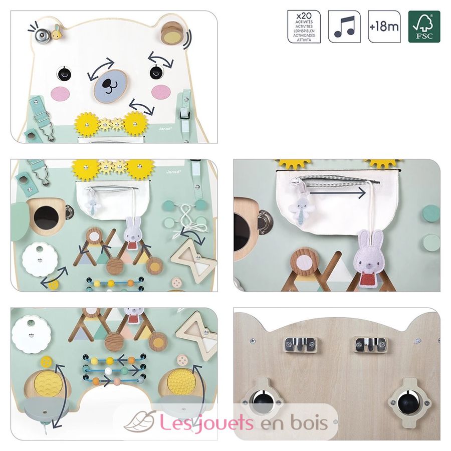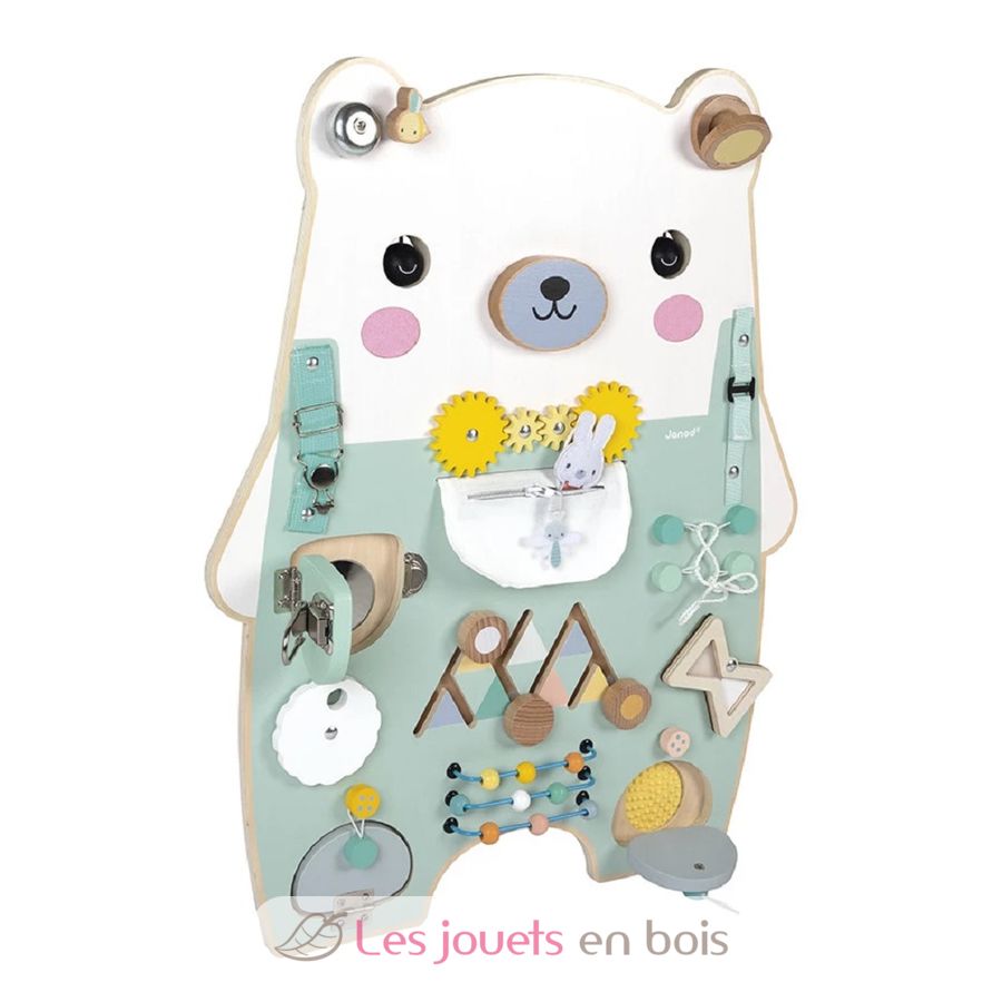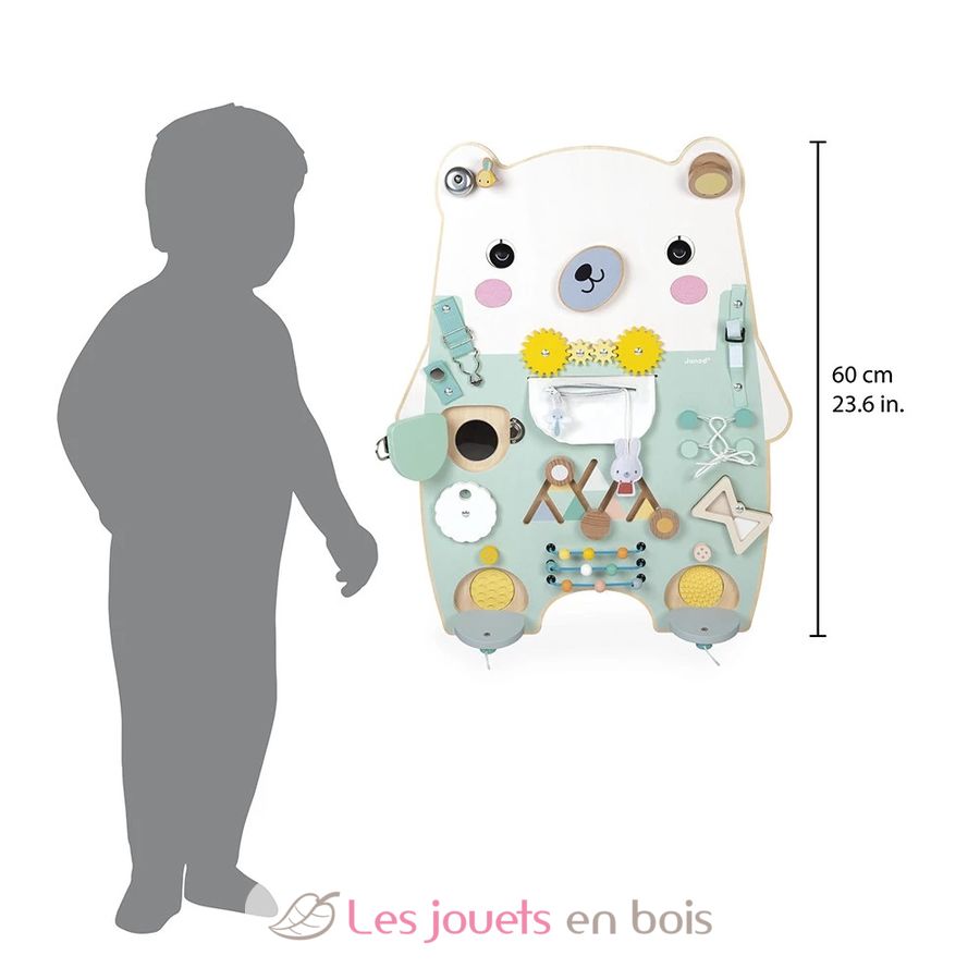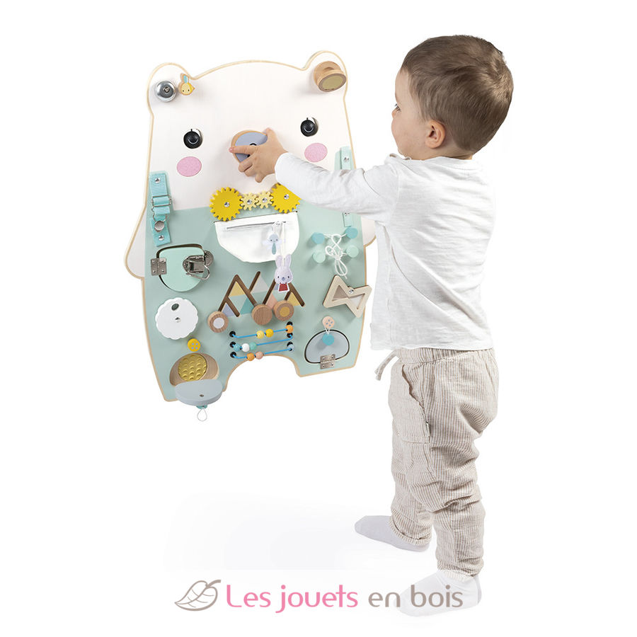 Panneau d'activités ourson, à poser ou à fixer au mur, pour proposer aux enfants plus de 20 jeux d'éveil divertissants, dès 18 mois.