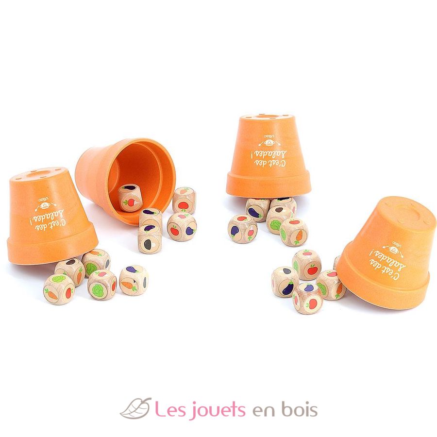 C'est des salades Jour de récolte, un jeu de dés en bois de la marque Vilac. Référence 2166.