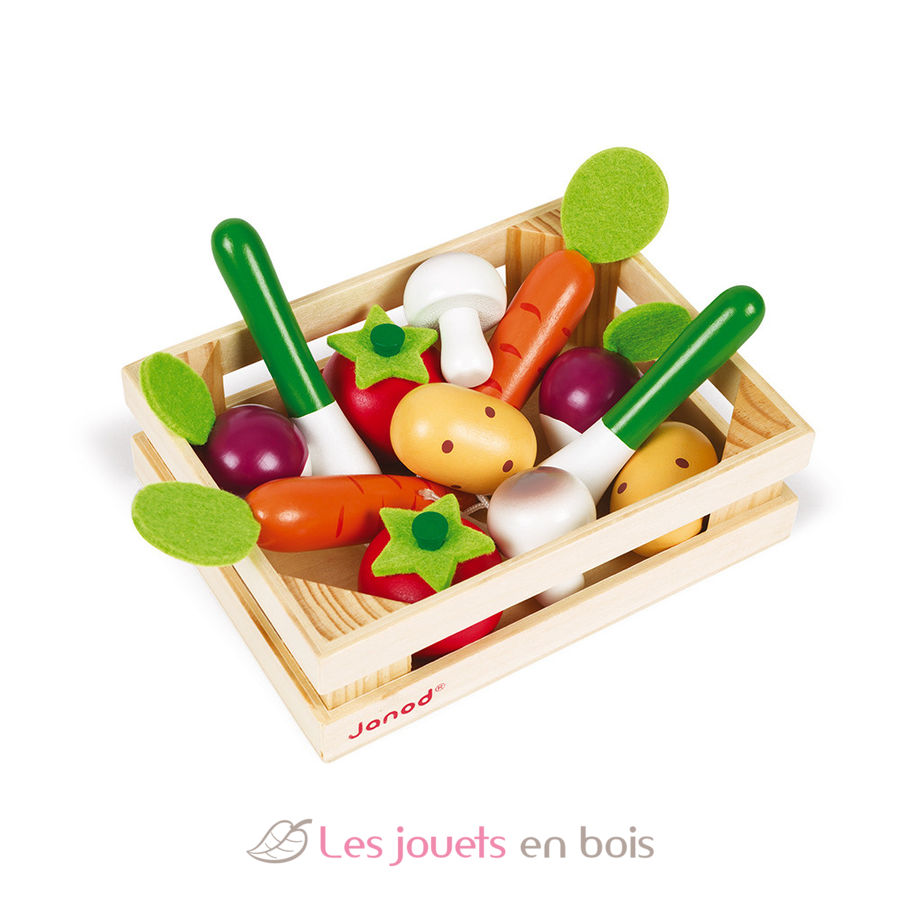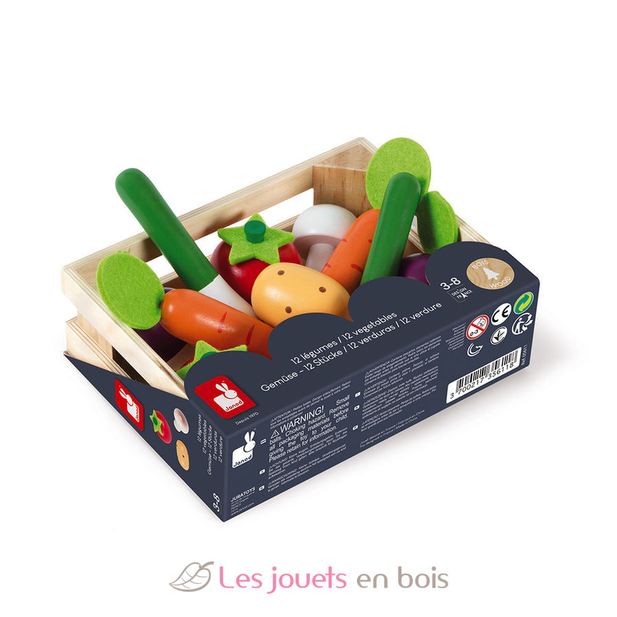 Avec cette cagette de 12 légumes en bois, votre enfant préparera de délicieuses salades pour ses poupées... Idéal pour accompagner une dinette (réf:06537)ou une cuisine. Un jouet en bois ludique et décoratif. Cagette de légumes en bois de la marque Janod. Ref. 05611