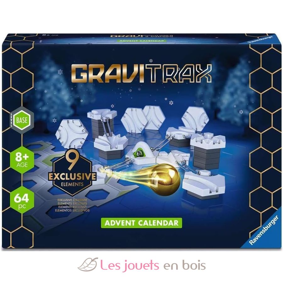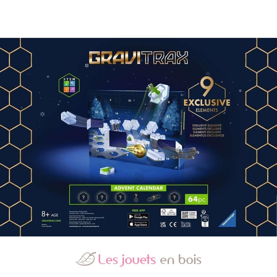 Un circuit de Noël et des explications sur les différentes pièces de construction sont incluses dans l'application GraviTrax. Il est possible de construire un circuit à billes à la fin des 24 cases ouvertes ! Les pièces sont également compatibles avec tous les produits GraviTrax.