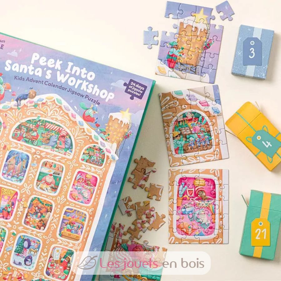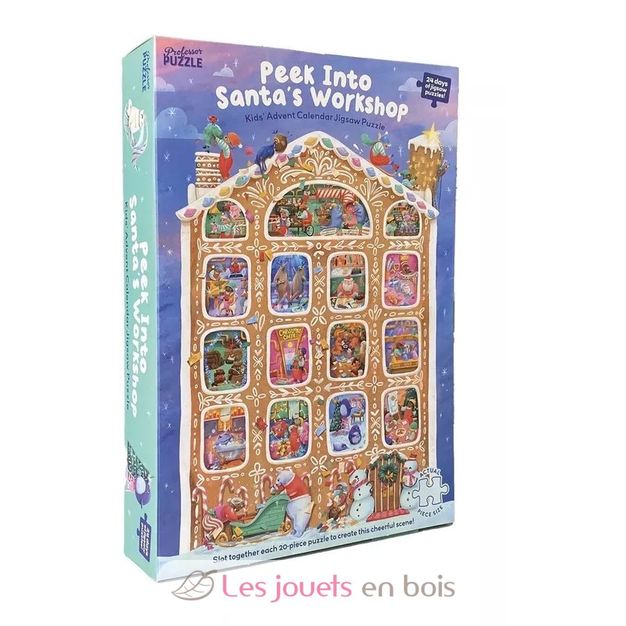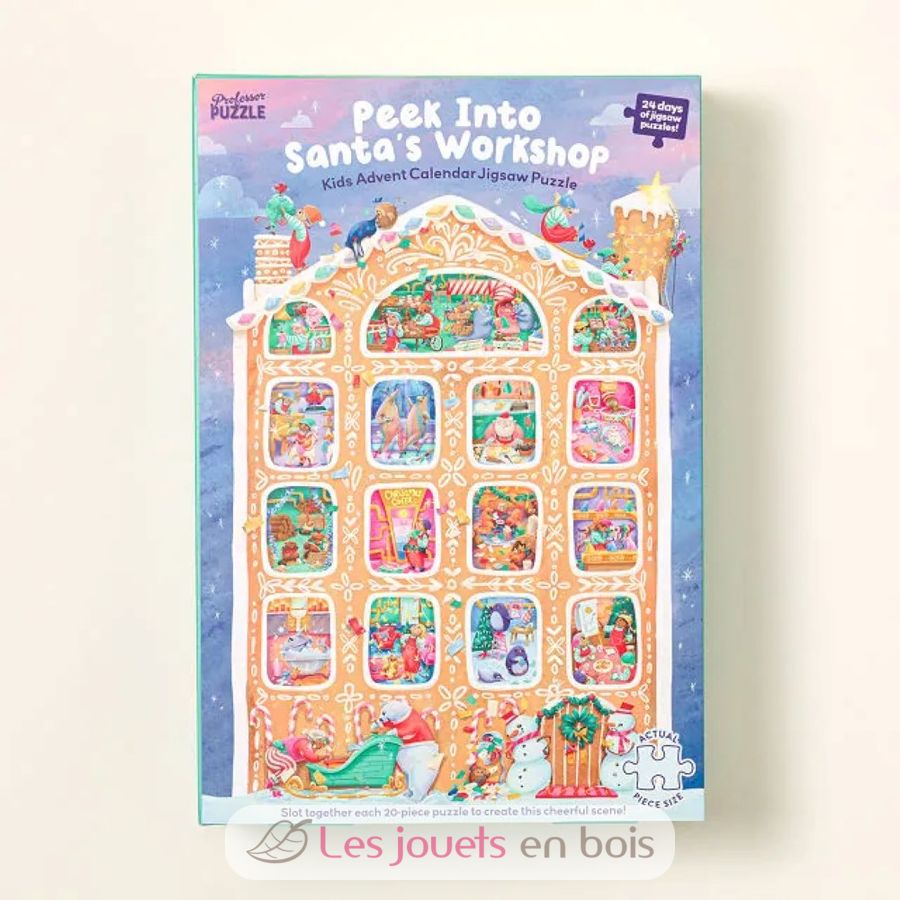 Derrière chacune des 24 fenêtres de l'atelier du Père Noël se cache un puzzle de 20 pièces en carton. Assemblez-les chaque jour, puis positionnez-les pour recréer la scène festive complète de 480 pièces au total.
