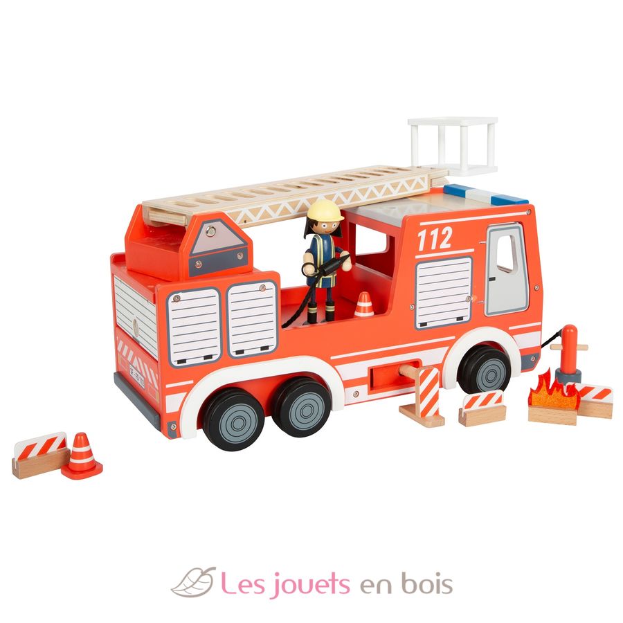 Camion de pompiers rouge, un véhicule de jeu en bois de la marque Small foot.