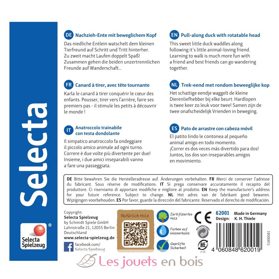 Un jouet en bois à tirer fabriqué en Allemagne par la société Selecta.
