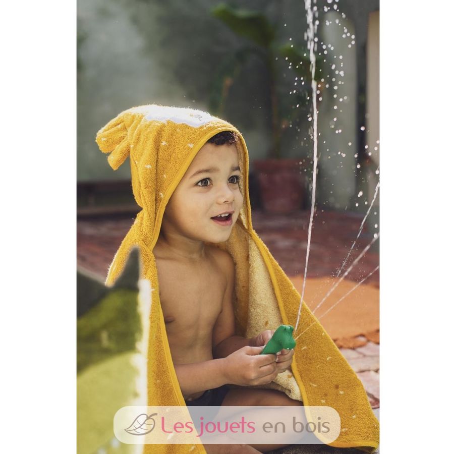 Confectionnée dans un tissu éponge merveilleusement doux, à partir de coton 100% biologique, cette serviette de bain apportera tout le confort dont votre enfant a besoin.